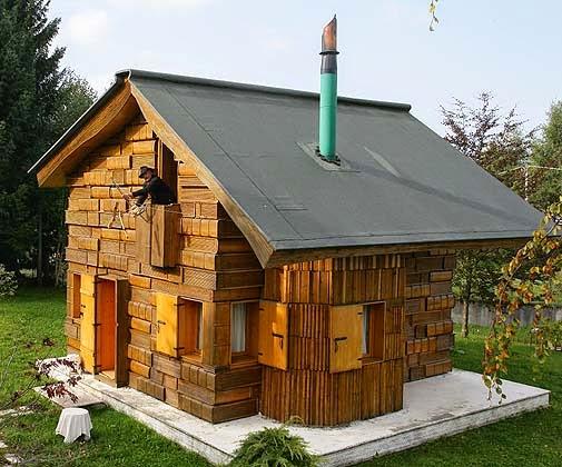 Nella fattispecie, la staccionata d’ingresso è a forma di matite vicine l’un l’altra, il cancello assomiglia ad un enorme paio di occhiali rossi, mentre la struttura vera e propria delle pareti rappresenta dei libri, come se fossero disposti l’uno sopra l’altro. Infine, il tetto è a forma di libro aperto a faccia in giù ed il camino sembra una penna.